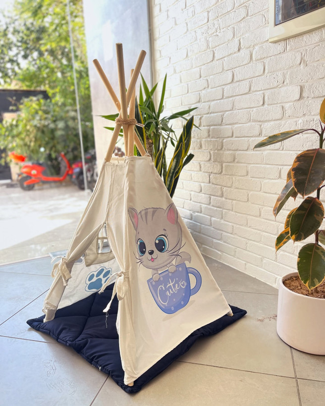 چادر قابل حمل سرخپوستی همراه با تشک که به دلیل وجود چوب های تاشو به راحتی میتوان با خود به باغ و پارک و مسافرت برد،جنس پارچه از متقال و کاملا قابل شستشو میباشد.