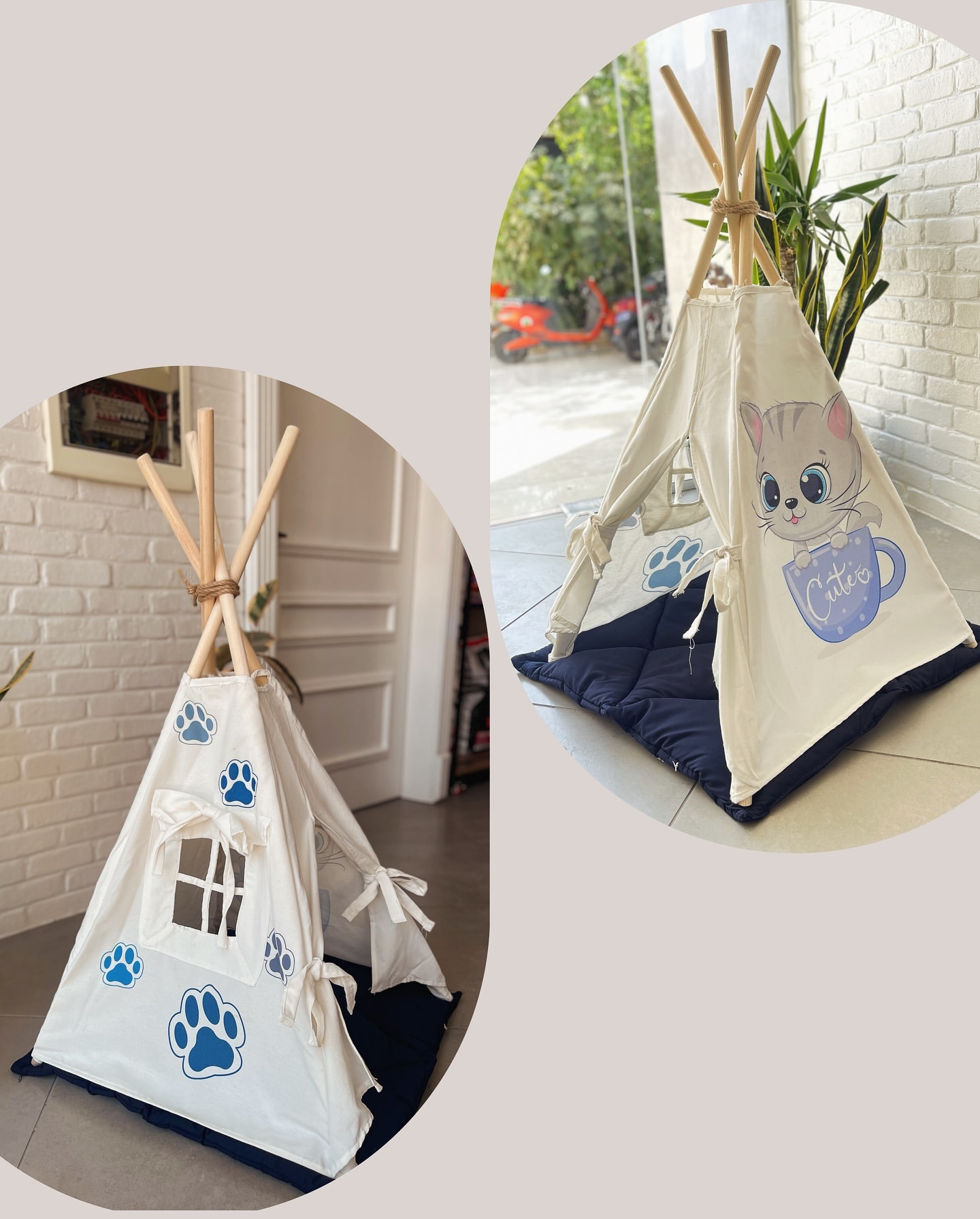 چادر قابل حمل سرخپوستی همراه با تشک که به دلیل وجود چوب های تاشو به راحتی میتوان با خود به باغ و پارک و مسافرت برد،جنس پارچه از متقال و کاملا قابل شستشو میباشد.