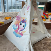 چادر قابل حمل سرخپوستی همراه با تشک که به دلیل وجود چوب های تاشو به راحتی میتوان با خود به باغ و پارک و مسافرت برد،جنس پارچه از متقال و کاملا قابل شستشو میباشد.